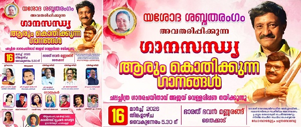 തൈക്കാട് ഭാരത് ഭവൻ മണ്ണരങ്ങിൽ മാർച്ച് 16ന് ഗാനസന്ധ്യ.